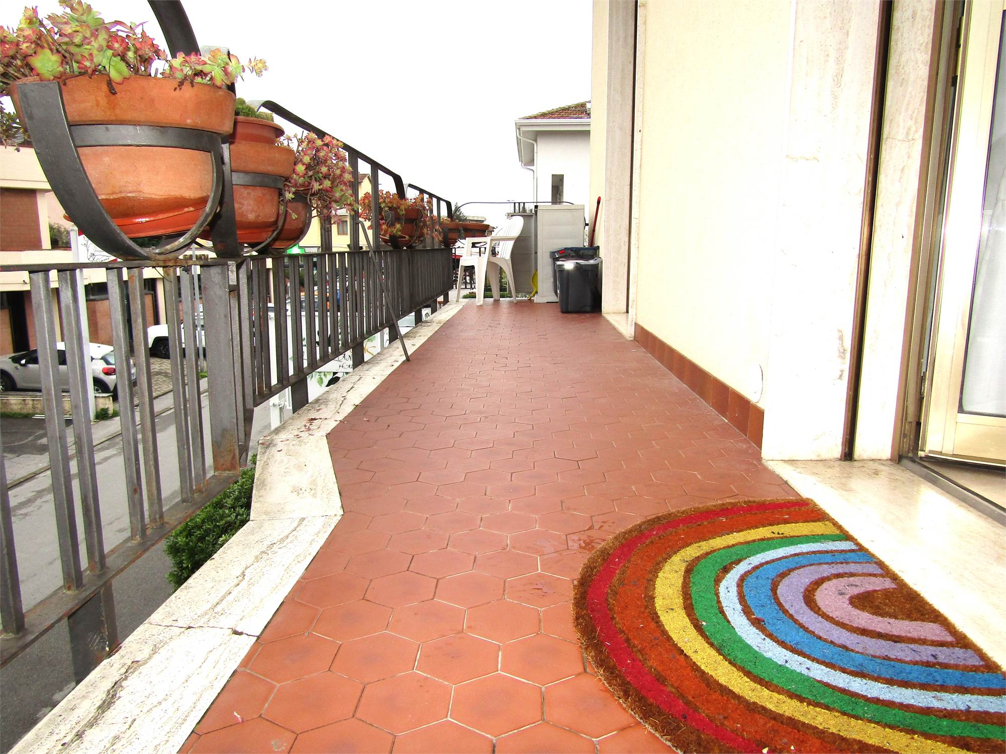 L'immobile si trova al piano primo di una piccola palazzina ed è così composto: ingresso su zona giorno, cucinotto, disimpegno, due camere da letto matrimoniali, bagno oltre terrazzo.